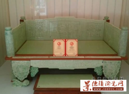 據(jù)了解,該陶瓷大床由大埔縣光德鎮(zhèn)源峰陶瓷家具廠負(fù)責(zé)人詹永源投資600余萬元制作,長218厘米、寬133厘米、高113厘米,從2010年開始至2013年3月耗時(shí)3年才完成。該陶瓷大床采用當(dāng)?shù)馗邘X土高溫?zé)贫,其不僅色釉圓滑、毫無劃痕,而且手工雕刻有栩栩如生的花鳥蟲魚等美麗圖案,讓人嘆為觀止。