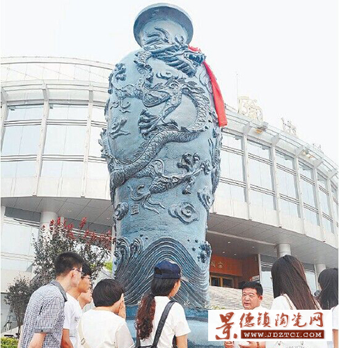 7月8 日,一對高6.6米的陶瓷巨瓶———圓夢中華龍瓶在淄博中國陶瓷館門前亮相,吸引了許多游客紛紛拍照留念。“圓夢中華龍瓶落戶淄博中國陶瓷館實至名歸,填補了陶瓷館的一項空白。”淄博中國陶瓷 館高級研究員高巖說。
