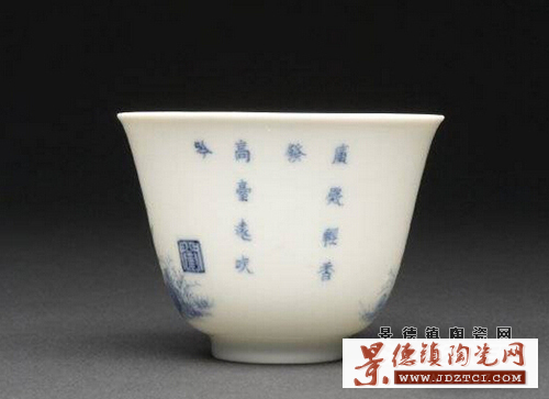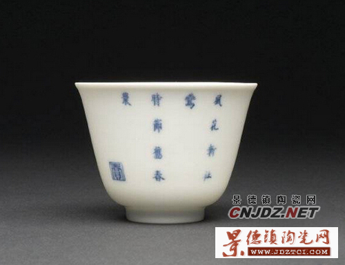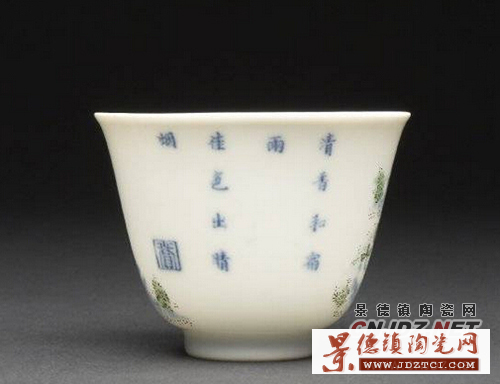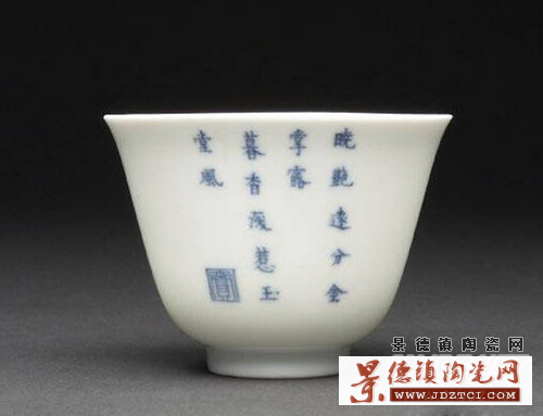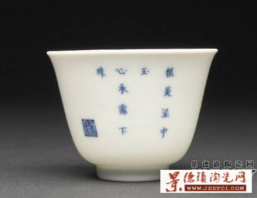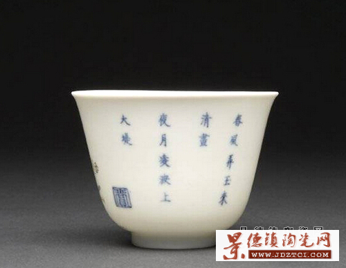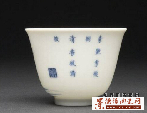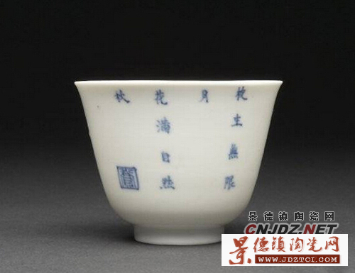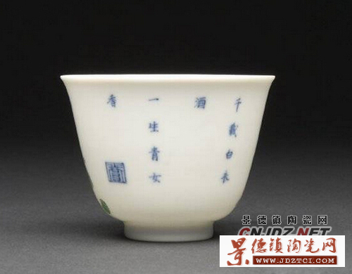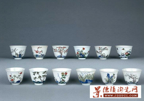 康熙對歷代的瓷器很有研究十分欣賞,康熙十九年下令景德鎮(zhèn)恢復(fù)御窯廠,研制新風(fēng)格的各種瓷器。康熙二十五年景德鎮(zhèn)御窯廠為宮廷燒制一套生活用瓷——“十二花卉紋杯”,第一次把“詩、書、畫、印”在同一器皿上并用,每只杯上繪一種應(yīng)時花卉,指代歷史上的著名女性,并題上相應(yīng)的詩句,慣稱“十二月花神杯”?滴趸实凼窒矏,幾次南巡都帶在身邊,他不僅喜歡花神杯瓷器的工藝更喜歡花卉配唐詩的文化意境。