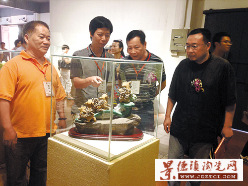 記者15日在廣東石灣陶瓷博物館看到, 展覽剛剛開放不久,展館里面便吸引很多市民參觀,展覽中共有來自展出全國各地高校陶瓷藝術教育家、陶瓷藝術大師、陶瓷藝術家等60人作品60多件,其中不乏知名陶瓷大師的作品,比如潘紹棠的《思》、周國禎的《烏骨雞》、劉澤棉的《老子》以及劉炳的《詩翁李白》等陶瓷精品。