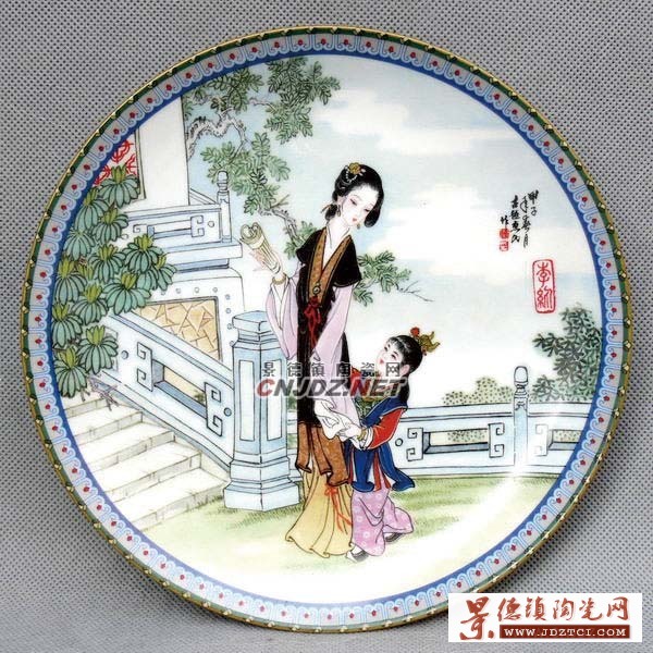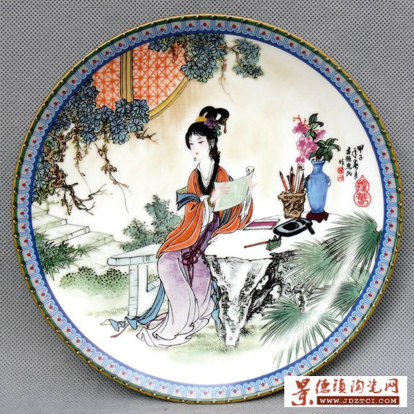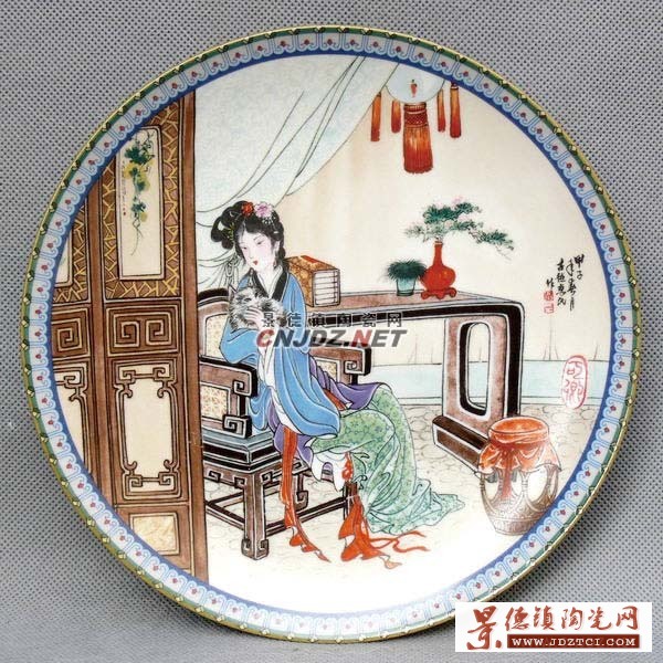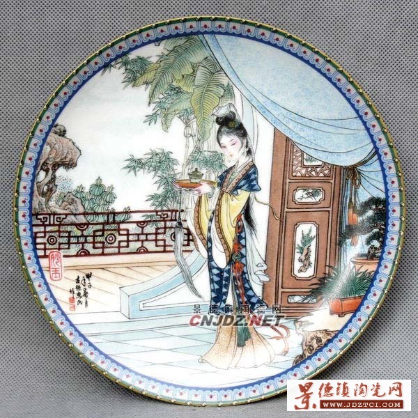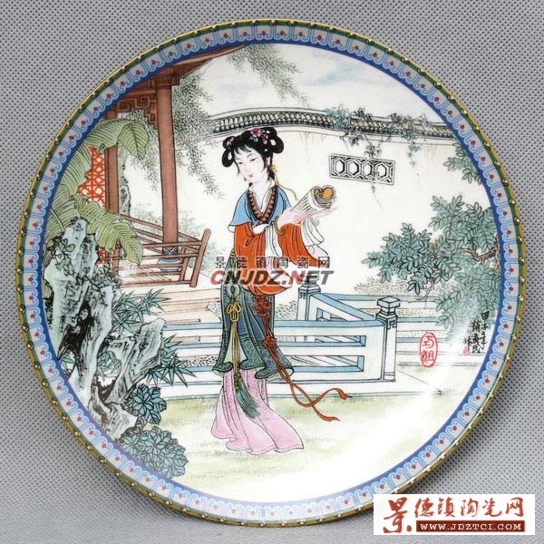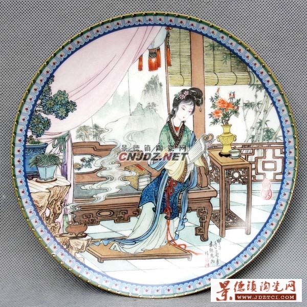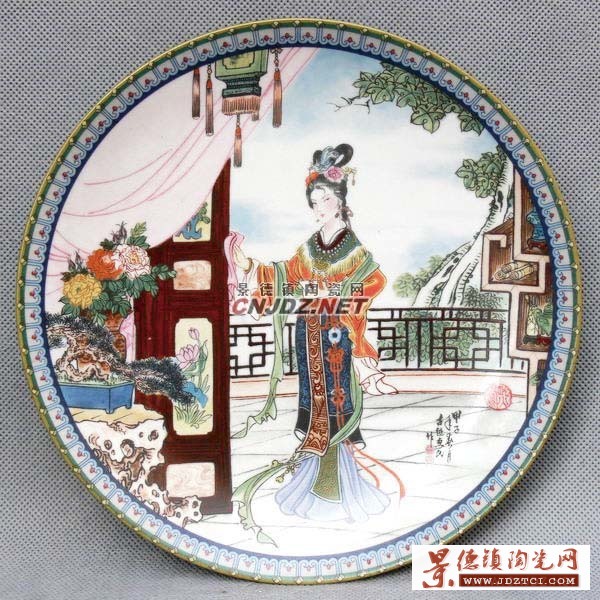 趙惠民根據(jù)古典文學(xué)名著《紅樓夢(mèng)》設(shè)計(jì)創(chuàng)作的十二釵系列彩盤,個(gè)個(gè)性格鮮明,呼之欲出,十二個(gè)人物或立或坐、或讀書、或賞花。