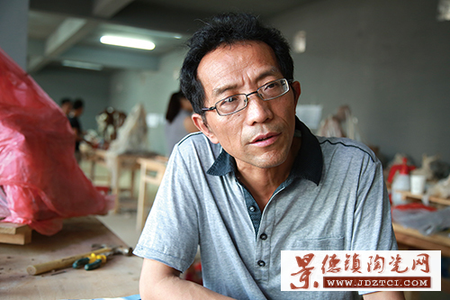 6月17日下午,記者來(lái)到景德鎮(zhèn)市工業(yè)管理辦公室創(chuàng)建的陶瓷0798 小微企業(yè)創(chuàng)業(yè)園,走進(jìn)工作室,可以看到水泥地面上擺放著十幾張長(zhǎng)桌子,而每個(gè)桌子上都布滿著創(chuàng)作過(guò)后留下的泥灰。在炎炎夏日,讓人感覺(jué)有一絲悶熱;蚶匣蛏賻酌藝術(shù)家正在凝神創(chuàng)作。記者采訪了景德鎮(zhèn)市雕塑協(xié)會(huì)的一些班子成員。
