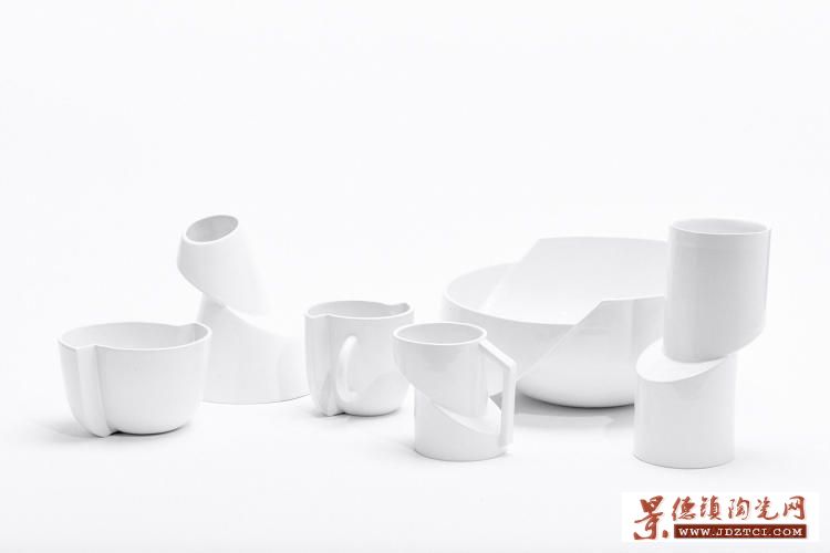 盛放食物和水的容器是我們每天都會使用到的物品,對于這些司空見慣的水杯、瓶子、碟子等器皿,我們可能不會對其有太多留意,但是這些普通的物品落到了設(shè)計 者手中,卻能煥發(fā)出別樣的魅力。第一眼看到伊恩·安德森作品原型的人,都會認(rèn)為那堆疊在工作臺上的陶瓷器皿是制作失敗的殘次品,并且還不小心的粘在了一起。但是事實是,這些作品正是安德森最新設(shè)計的不對稱陶瓷器皿。