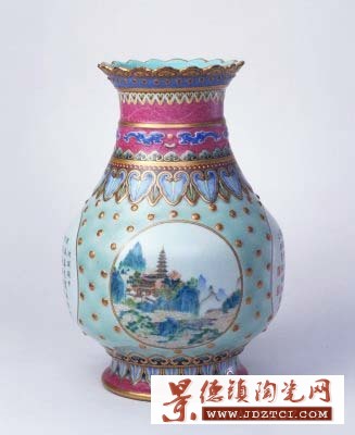 琺瑯彩開(kāi)光山水詩(shī)句瓶,清乾隆,現(xiàn)藏于北京故宮博物院琺瑯彩開(kāi)光山水詩(shī)句瓶,清乾隆,現(xiàn)藏于北京故宮博物院