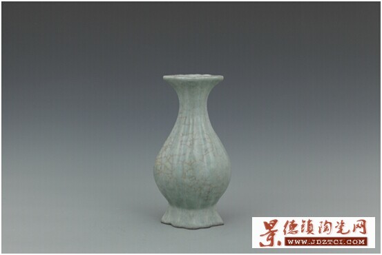 展出的南宋青釉冰裂弦紋瓶為南宋宮廷賞器,存世稀少,目前故宮也僅存一件。專家介紹說(shuō),其釉色粉青中微微發(fā)藍(lán),為南宋皇室追求的極致色彩,可與汝窯雨過(guò)天晴云破處的釉色媲美,超越了同時(shí)期其他官窯的釉色。