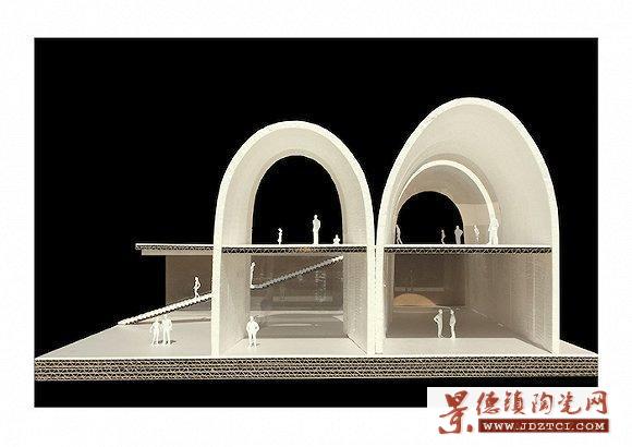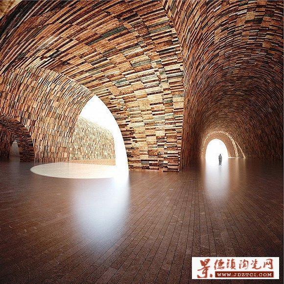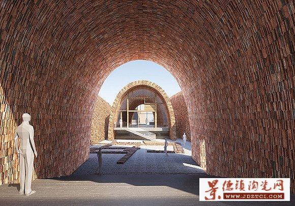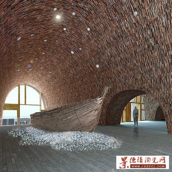 根據(jù)建筑模型和效果圖看,建筑公司朱锫工作室將整個博物館分成了地上和地下兩部分。地上部分正是工人們用瓦片層層堆砌出的“窯”,遠看像極了巧克力卷,近看則能通過仿古的瓦片堆疊,感受到“窯”簡單、古樸的氣質(zhì)。
