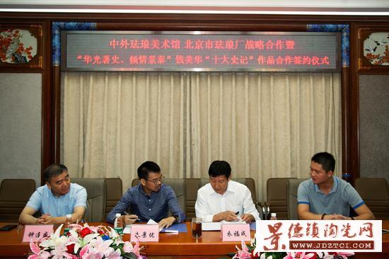 2016年8月17日上午10時,中外琺瑯美術(shù)館、北京市琺瑯廠戰(zhàn)略合作暨“華光著史·傾情景泰”錢美華“十大史記”作品合作簽約儀式在北京市琺瑯廠隆重舉行,北京市琺瑯廠廠長衣福成;中外琺瑯美術(shù)館館長朱景優(yōu);中國工藝美術(shù)大師、北京市琺瑯廠總工藝師、錢美華大師弟子鐘連盛;中外琺瑯美術(shù)館開發(fā)總監(jiān)許江華蒞臨了活動現(xiàn)場,就錢美華十大史記作品合作事宜進行了協(xié)定和簽署,以錢美華大師十大傳世珍品的恢宏呈現(xiàn),共同推進國家非遺景泰藍技藝的傳承和發(fā)展。