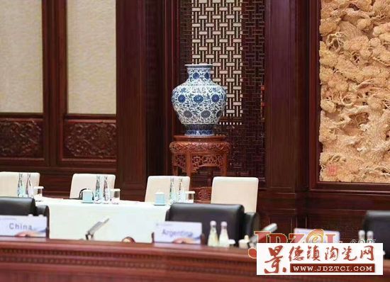 15日下午,29國(guó)元首在北京雁棲湖國(guó)際合作高峰論壇主會(huì)議廳召開(kāi)圓桌峰會(huì),在氣勢(shì)恢宏的主會(huì)議廳,習(xí)近平主席座位的后方兩側(cè)擺放著一對(duì)以八吉祥紋和蓮花相配合作為紋飾圖案的青花瓶,這是由元華堂選送的仿乾隆青花纏枝托八寶紋鋪首尊;在高峰論壇新聞發(fā)布廳,以牡丹為主題利用青花斗彩技法的瓷瓶特別引人注目,這是由藝術(shù)家曾維開(kāi)創(chuàng)作的《國(guó)色天香》,象征著富貴吉祥,繁榮昌盛;還有仿乾隆青花開(kāi)堂折枝果紋獸耳扁瓶、色釉瓶《鶴春千秋》、象耳瓶《圓夢(mèng)中華》、青花龍鳳胭脂紅斗彩茶具8件套、斗彩九龍盤、瓷瓶《海納百川》.....據(jù)了解,112件(套)陶瓷藝術(shù)品和生活日用瓷陳列在高峰論壇的5個(gè)重要區(qū)域,分別是國(guó)際合作高峰論壇主會(huì)議廳、習(xí)近平主席與外國(guó)元首及政府首腦會(huì)見(jiàn)大廳、高峰論壇新聞發(fā)布廳、各國(guó)元首等候會(huì)見(jiàn)廳、各國(guó)元首峰會(huì)期間休息廳。