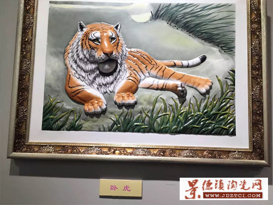 凸出來的瓷板畫,不過老虎的胡須是塑料做的