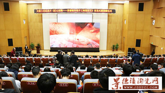 10月22日下午,景德鎮(zhèn)中國陶瓷博物館學(xué)術(shù)報告廳掌聲如雷,大型工藝紀(jì)錄片《匠心冶陶》首發(fā)(映)式暨捐贈儀式在這里舉行,并第一次對外播放了該紀(jì)錄片的第一集《手工藝之都》。市委常委、市委宣傳部部長吳雋出席并致辭,副市長熊皓主持儀式。