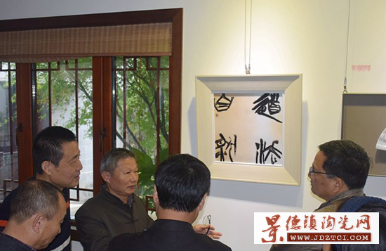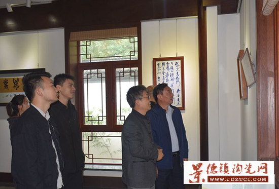 三寶陶緣山莊內(nèi)溪水潺潺,琴音繞梁,10月25日,景德鎮(zhèn)市書法家協(xié)會舉辦陶瓷書法作品展,市人大常委會原副主任吳光輝、余樂明及眾多陶瓷、書法愛好者前來參觀。