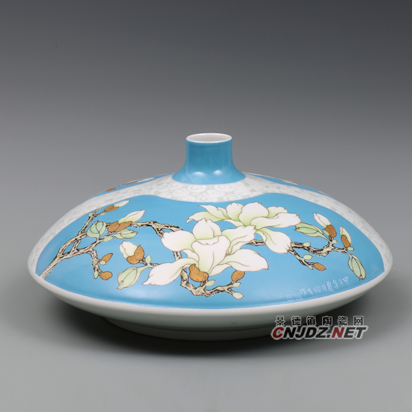 景德鎮(zhèn)的陶瓷藝術(shù)家畫花鳥的很多,其中,花卉里面畫荷花、牡丹的居多,畫白玉蘭的很少。江西省高級工藝美術(shù)師、青年陶藝家周國生于2012年始創(chuàng)藍(lán)釉地白玉蘭夢系列陶瓷作品被申請專利,作品也廣受好評。