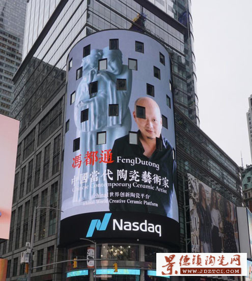 從2018年4月19日起,“ichina1愛(ài)陶瓷”中國(guó)當(dāng)代陶瓷藝術(shù)家馮都通先生亮相美國(guó)紐約時(shí)代廣場(chǎng),登上了素有“世界第一屏”之稱(chēng)的納斯達(dá)克大屏幕,全天候連續(xù)滾動(dòng)播放二天。
