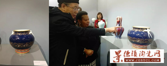 本次文化展的陶瓷作品分為“絲路記憶、青花故事、彩繪世界、窯變萬彩、雕刻時光、美麗生活”六大篇章,共有來自景德鎮(zhèn)的陶瓷作品160件(套)。仿自中國康乾盛世之寶——乾隆霽青釉金彩海晏河清尊的《霽青釉描金海晏河清尊》也亮相在盛典之中,以其濃厚的陶瓷文化色彩,向南非民眾展現了中國景德鎮(zhèn)陶瓷所獨有的藝術魅力。