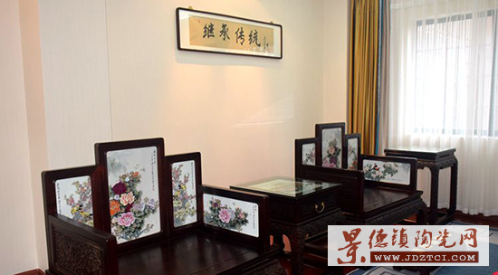 瓷木作品《龍騰紫氣·富貴祥瑞》共64件(套),精選上等紅木進(jìn)行探釘、起釘、開料、烘干、平衡、毛料、精料、卯榫、成型、打磨、拋光、油漆等多套繁復(fù)工序,再以張松茂大師粉彩瓷畫賦予其生命力。瓷畫以雍容華貴的牡丹為主體,搭配山水、荷花、鴛鴦、玉蘭、春花等元素,瓷畫與家具構(gòu)成了一幅“富貴祥瑞·龍騰紫氣”的和諧畫面,莊重端美,艷麗舒適。