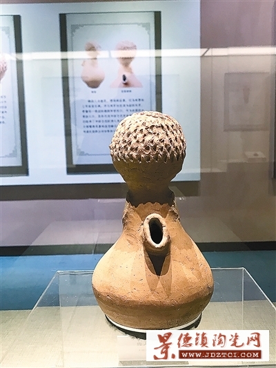 人頭部中間是空的,口、眼與壺內(nèi)相通。發(fā)型用扁平錐刺出頭發(fā)的紋理。肩部兩側(cè)有斷臂痕跡,專家們根據(jù)人頭壺耳、臂殘缺跡象判斷,當(dāng)年制作這只壺時,遠(yuǎn)古先民可能將兩臂向上彎曲至頭部,并與兩耳相連做成壺的雙耳,這種設(shè)計顯示了古人的智慧。人頭壺的背面有一個突出的橢圓形管狀口,是主要出水口。