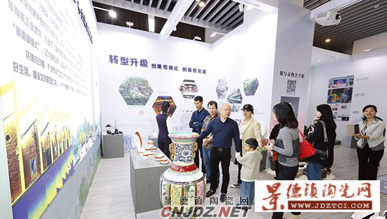 在景德鎮(zhèn)市展廳,記者看到,整個展廳圍繞陶瓷文化的傳承、創(chuàng)新、交流這條主線,從塑形鑄魂、轉(zhuǎn)型升級、鳳棲雁回、絲路瓷行、國家戰(zhàn)略等五個板塊,集中展示了近年來景德鎮(zhèn)通過“雙創(chuàng)雙修”,全面復(fù)興城市文化功能、活態(tài)保護(hù)文化遺產(chǎn)、守住城市靈魂,大力發(fā)展陶瓷文化創(chuàng)意產(chǎn)業(yè)、著力培育新經(jīng)濟(jì)新業(yè)態(tài)新功能、推動產(chǎn)業(yè)轉(zhuǎn)型升級取得的成效。