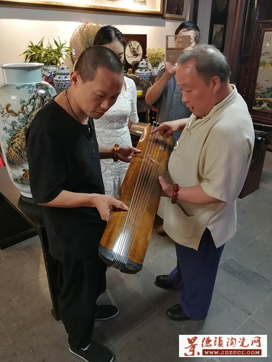 6月19日,徐雪勇受揚(yáng)州廣陵派泰斗劉少椿嫡孫第十二代傳人劉楊大師的邀請(qǐng)來(lái)到揚(yáng)州參觀,期間,徐雪勇帶上了自己的原創(chuàng)作品,并以個(gè)人的成長(zhǎng)經(jīng)歷為起點(diǎn),立足于傳統(tǒng)陶瓷文化土壤,以當(dāng)代藝術(shù)設(shè)計(jì)的眼光,分享了他對(duì)根雕藝術(shù)的設(shè)計(jì)精神及文化內(nèi)涵的理解。劉楊大師聽(tīng)后,表示對(duì)徐雪勇繪畫(huà)精髓的連連稱(chēng)贊,特別贈(zèng)送親斫的陰沉金絲楠木古琴,望能因瓷結(jié)緣,以琴動(dòng)人。這也正是這次跨界藝術(shù)碰撞的最好見(jiàn)證,讓彼此心靈中對(duì)千年傳統(tǒng)文化油然而生的敬畏和傳承之心。
