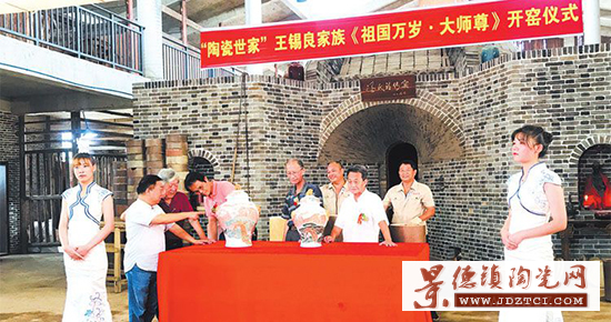為喜迎新中國(guó)成立七十周年,8月12日,“陶瓷世家”王錫良家族《祖國(guó)萬(wàn)歲·大師尊》開(kāi)窯儀式在名坊園祖?zhèn)鞲G舉行。