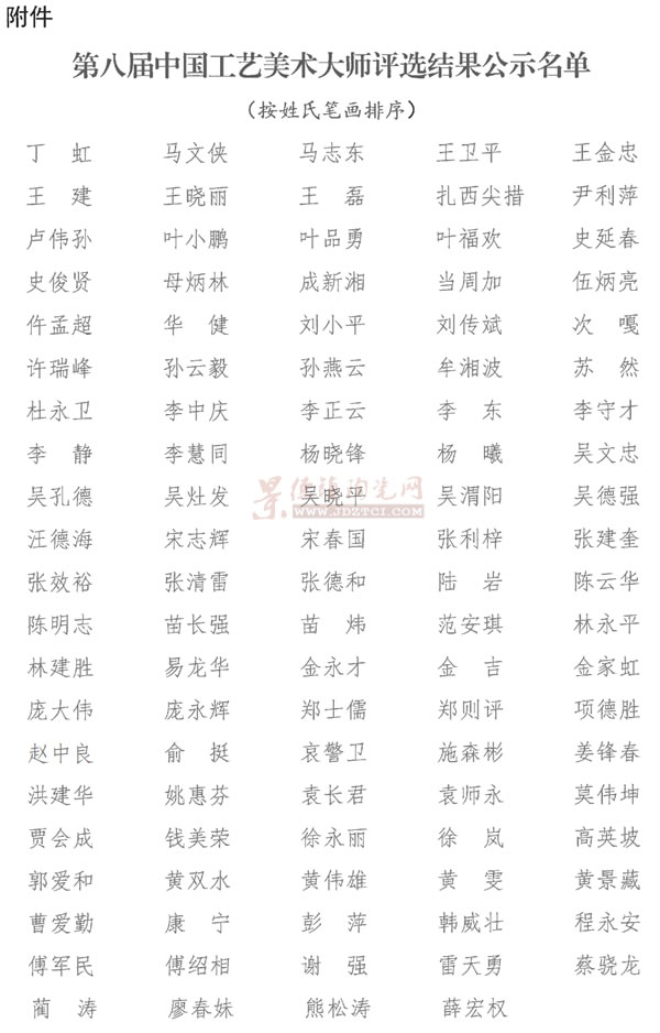 7月25日,中國(guó)輕工業(yè)聯(lián)合會(huì)發(fā)布《關(guān)于對(duì)第八屆中國(guó)工藝美術(shù)大師評(píng)選結(jié)果的公示》,共計(jì)104人入選中國(guó)工藝美術(shù)大師公示名單。